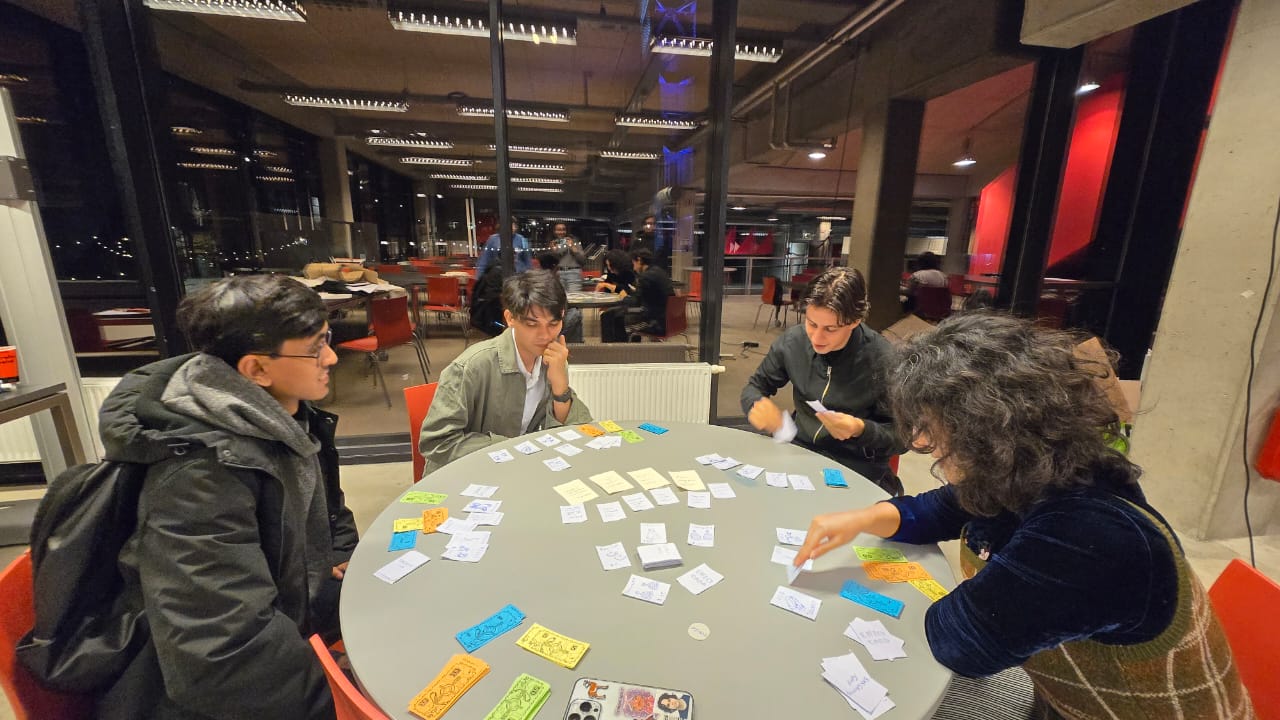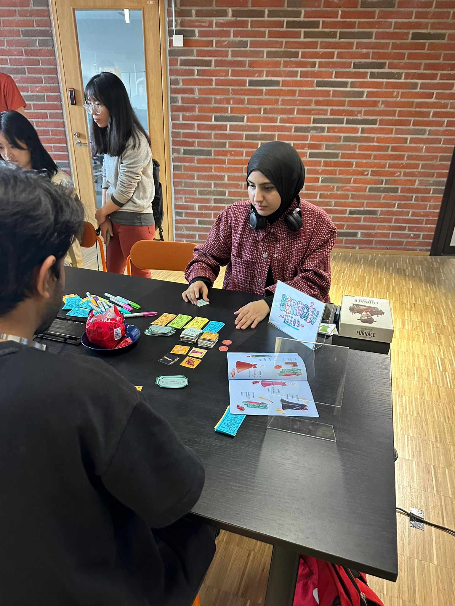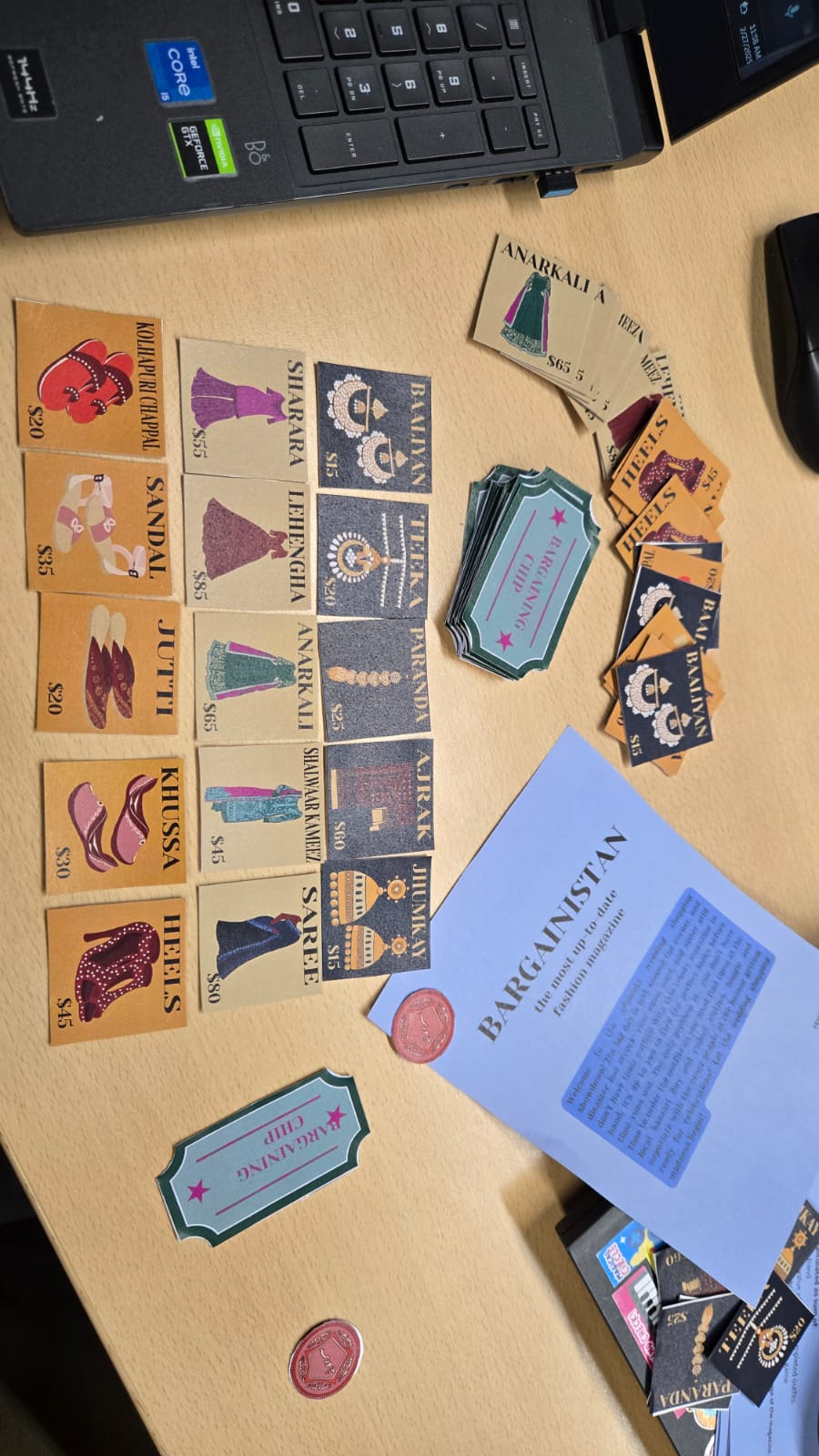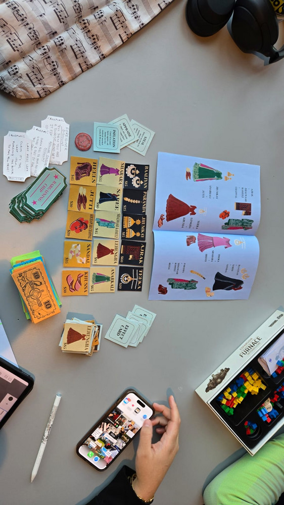 The game is a tactical bargaining board game where players dive into the chaotic setting of a bazaar. Played with 3 to 4 people, each player takes on the role of both, a crafty merchant and an interested customer, where they must buy, sell, bargain, and even scam & steal their way to collecting the items they need to complete their goal outfits.