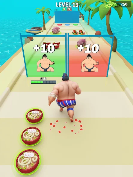 Took the game from the basic running game template to this stunning sumo fight. Added the main sumo mode. Built a system for adding the collectibles on the platform in a few clicks using Unity Editor scripting. Developed muscles upgrade system. Designed the levels and added new collectables, functionality, and sounds to them.